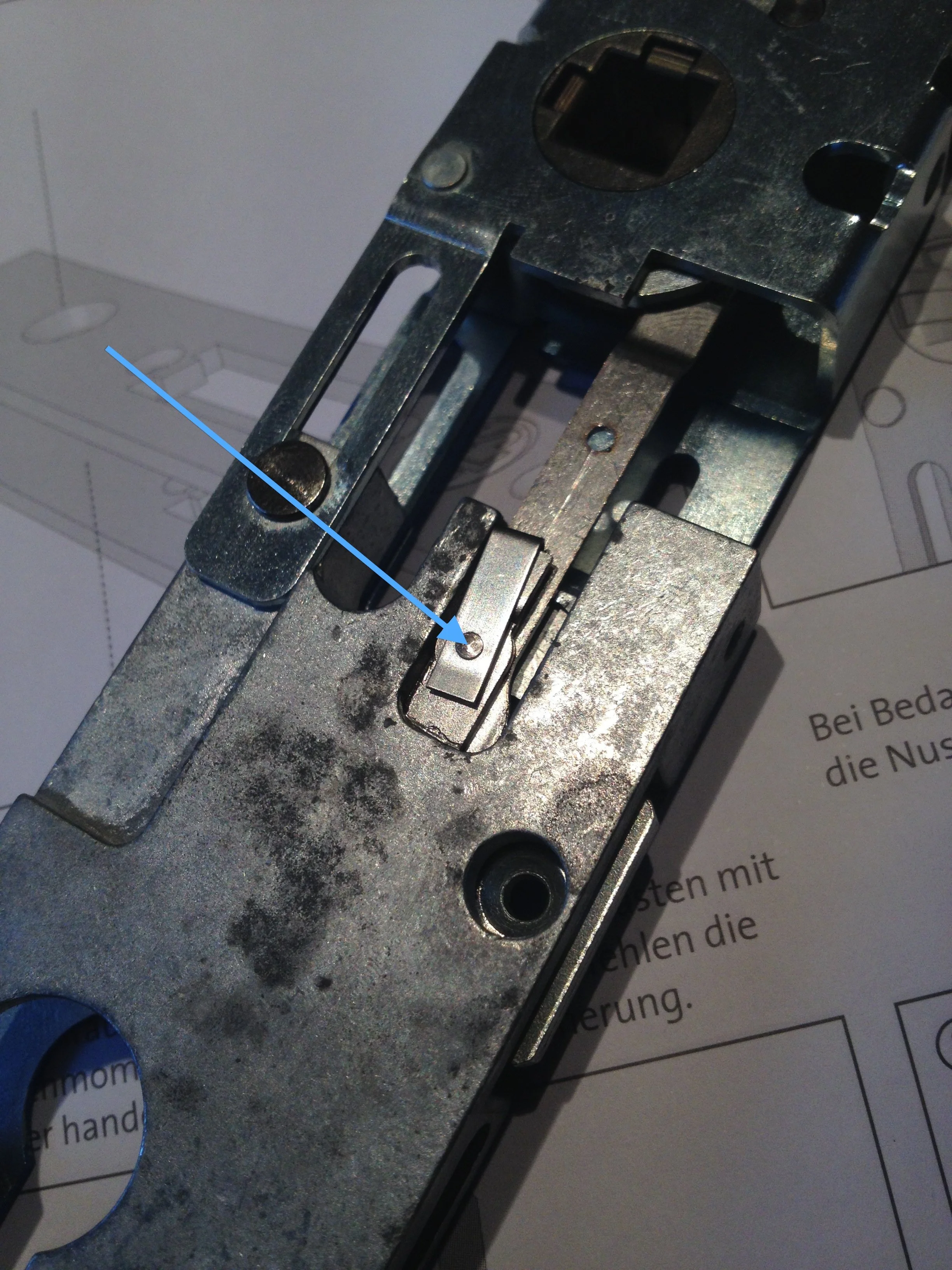Petit détail sympathique, malgré le fait de faire coulisser les 2 parties de la serrure pour passer de 92mm à 72mm, le rappel du lançant par le cylindre reste opérationnel en déplaçant un clips.